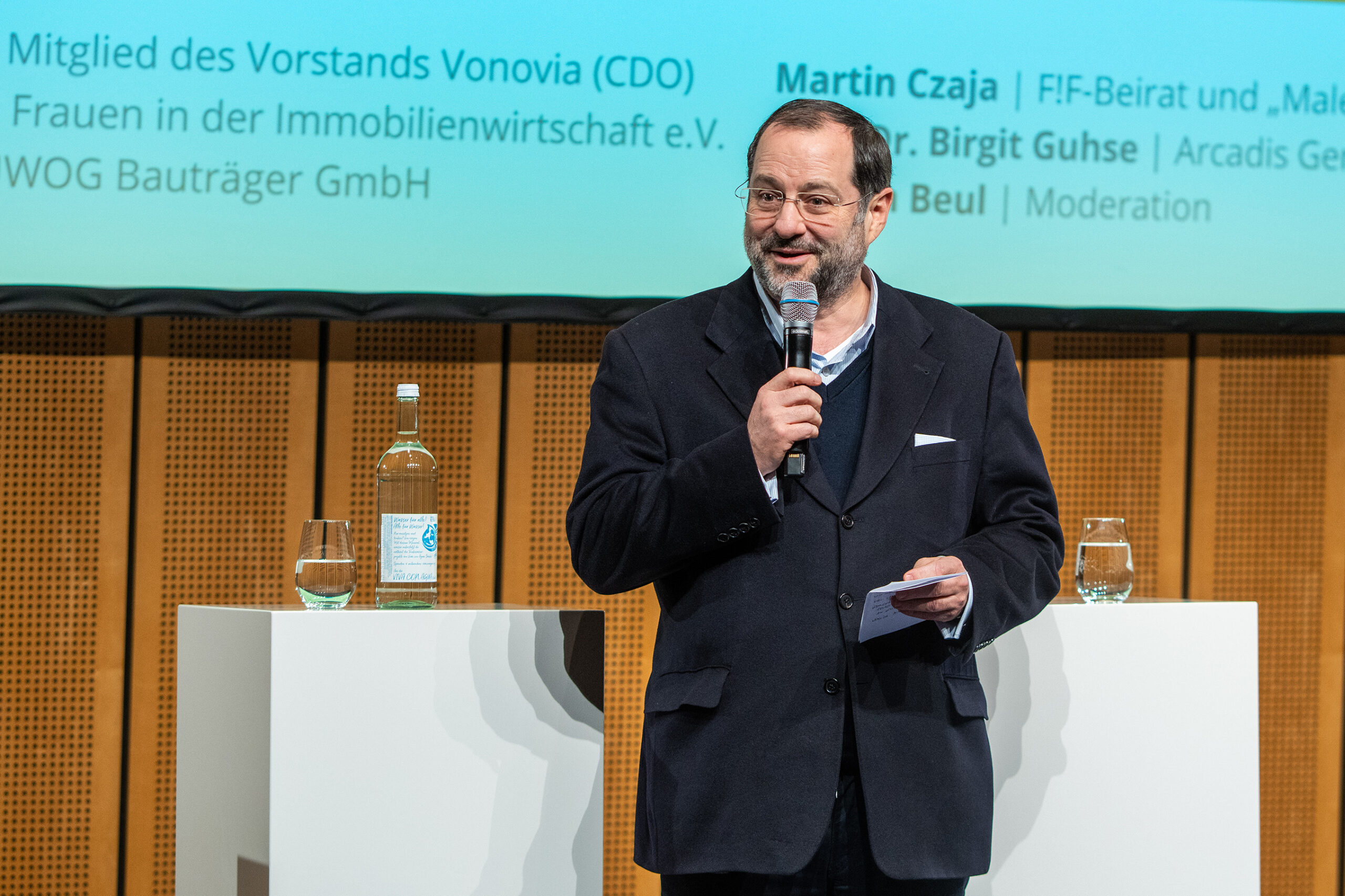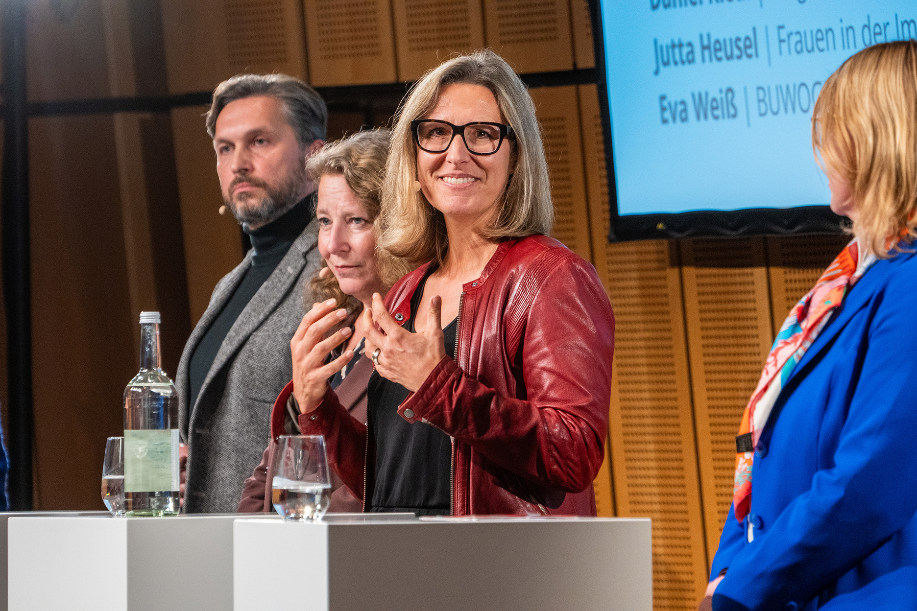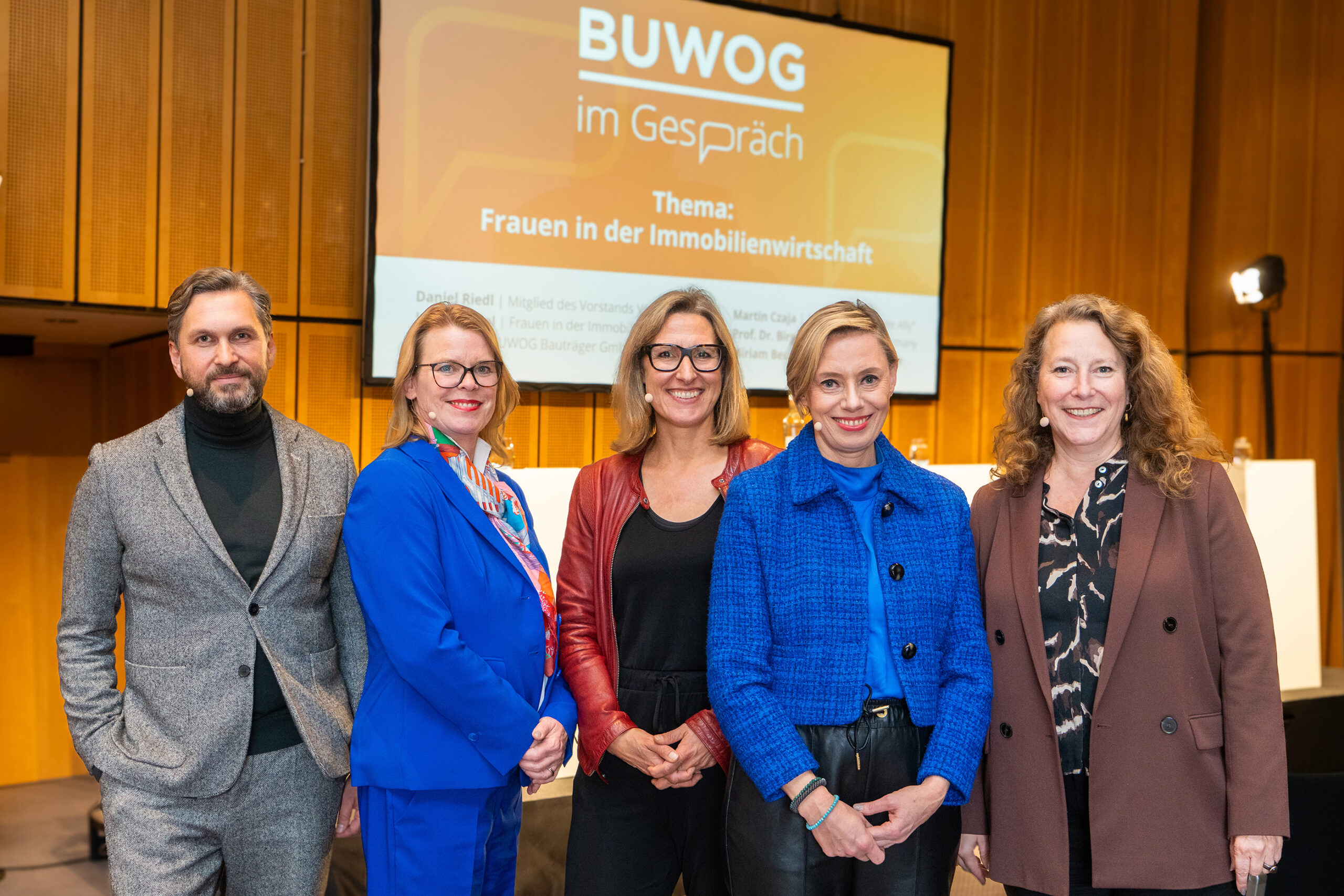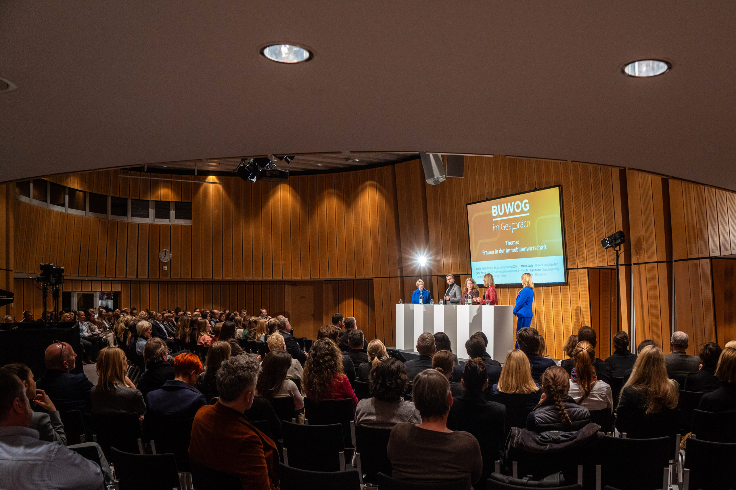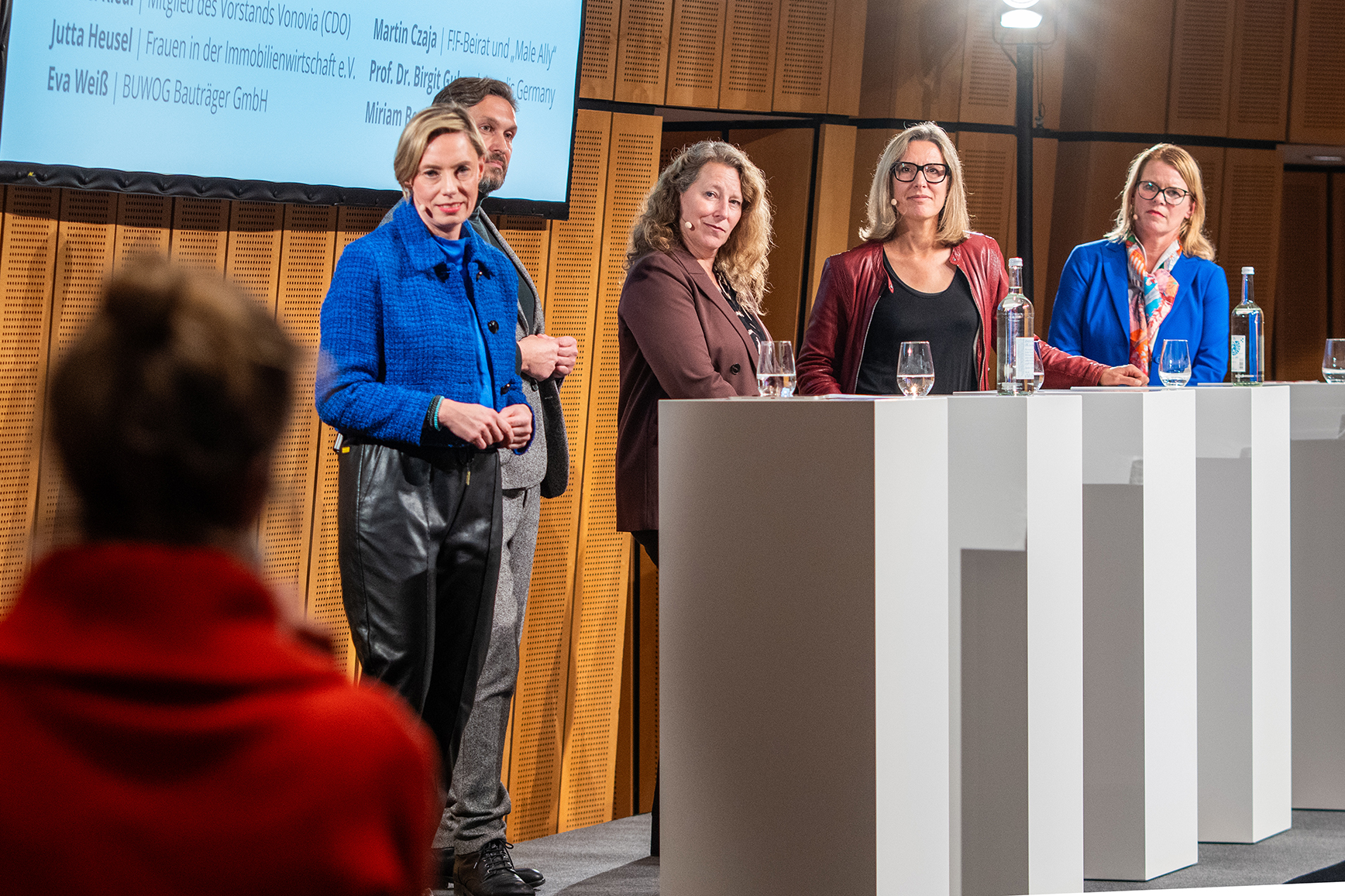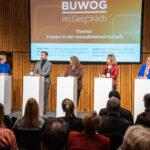 Auf dem Podium diskutierten anschließend Eva Weiß (BUWOG-Geschäftsführerin), Martin Czaja von GARBE Insite, Prof. Dr. Birgit Guhse (ARCADIS Germany) und Jutta Heusel. Die Expert:innen beleuchteten die Situation von Frauen in der Branche, sprachen über Chancen und Hürden und formulierten auch konkrete Lösungsideen um die Situation weiter zu verbessern. Der Abend zeigte deutlich, dass die Immobilienbranche Fortschritte macht, aber noch viele Aufgaben vor sich hat.